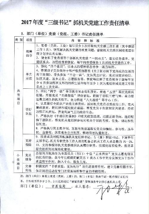 2017年度“三级书记”抓机关党建工作责任清单